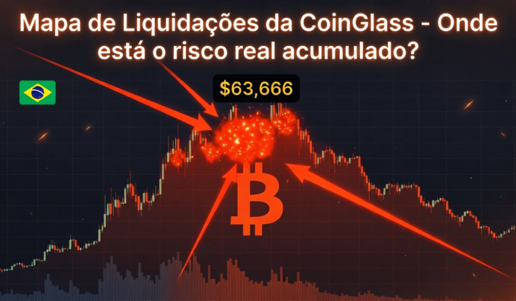5. O número de US$ 1,066 bilhão em liquidações é confirmado? Não completamente. Embora os dados circulem atribuídos à plataforma CoinGlass, o par exato – US$ 63.666 como nível gatilho e US$ 1,066 bilhão como valor acumulado – não pôde ser verificado de forma independente no momento da pesquisa. Trate a informação como um alerta, não como um dado definitivo.