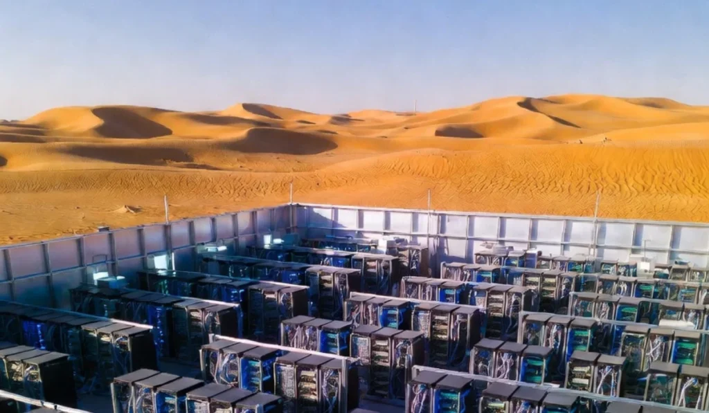 Pra conseguir minerar tanto Bitcoin assim, não basta ter alguns computadores ligados na tomada. Os Emirados construíram uma instalação gigantesca em Abu Dhabi, em 2022. Estamos falando de um complexo com tecnologia de ponta, equipamentos especializados e uma quantidade absurda de poder de processamento.