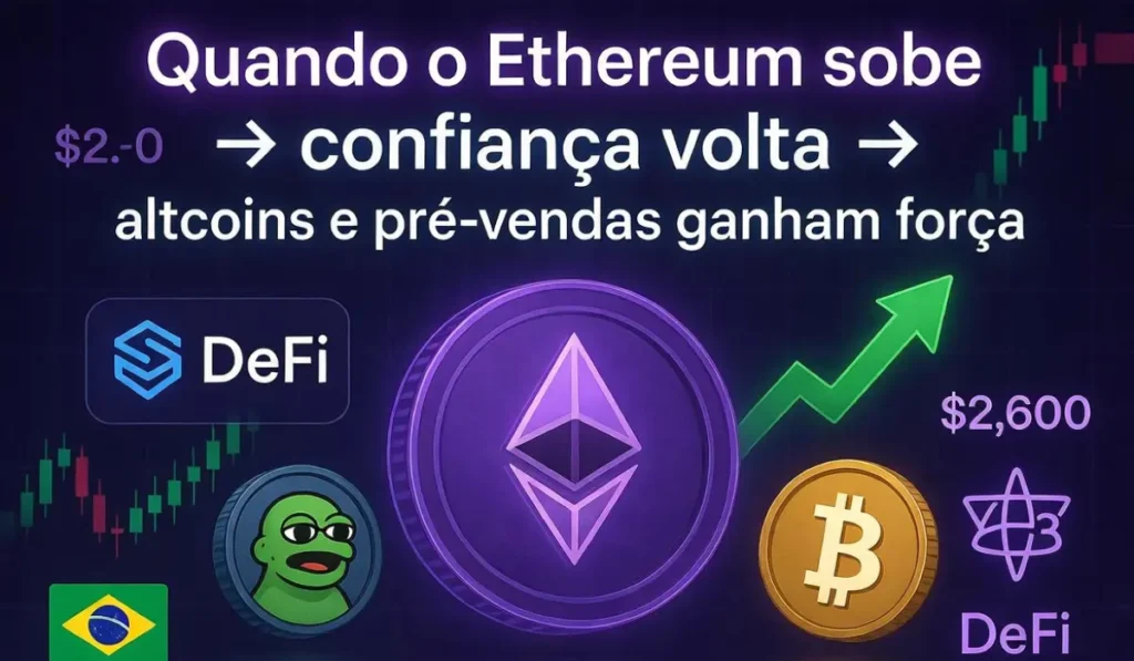 A resposta está na psicologia do mercado. Quando o Ethereum sobe ou mostra sinais fortes de recuperação, os investidores ficam mais animados. A confiança volta. E quando isso acontece, eles não ficam parados só no ETH. Eles começam a procurar a próxima oportunidade, aquele projeto que ainda não foi precificado pelo mercado.