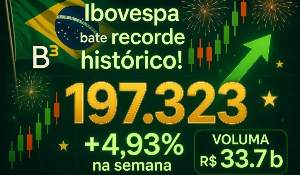 O Ibovespa fechou a semana em clima de festa no mercado financeiro brasileiro. Na sexta-feira, o índice encerrou acima dos 197 mil pontos pela primeira vez na história, renovando o recorde de fechamento e deixando muita gente de olho no que vem por aí. Mas o que exatamente aconteceu para essa alta toda? Vamos conversar sobre isso de um jeito simples, sem complicar.