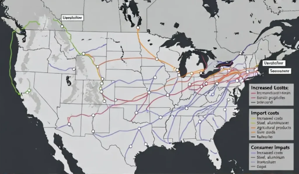Então o que acontece? A empresa americana que importa paga mais caro. E não para por aí. Esse custo extra vai sendo repassado em cada etapa: primeiro pro distribuidor, depois pro varejista, e finalmente chega no consumidor final.